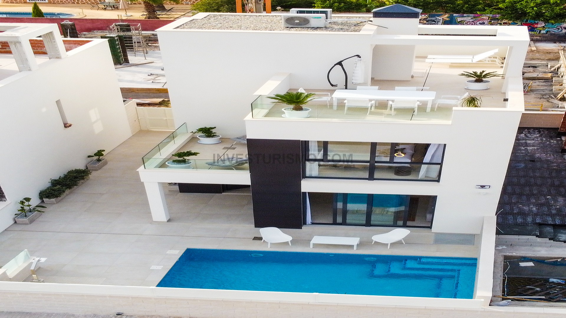 Perhaps the most beautiful house of all times. This incredible new build villa in Punta Prima seems to have fallen from the sky. The solarium will steal more than one smile. And your children will love the beautiful pool and the large garden and terrace space.